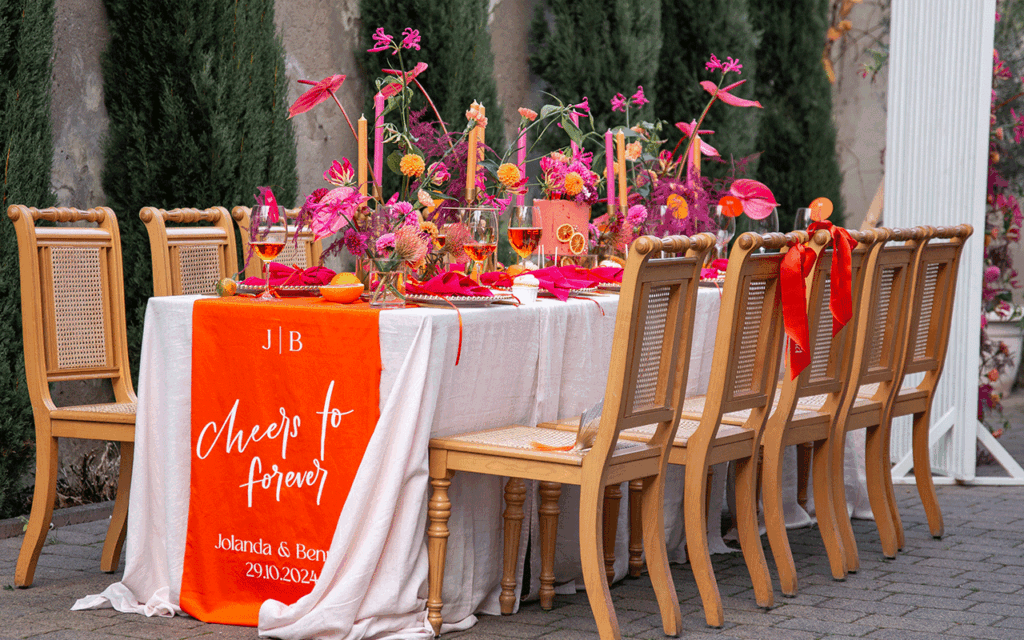 Dieses Konzept ist perfekt für Paare, die ein außergewöhnliches, fröhliches und stilvolles Design abseits klassischer Farbschemata suchen. Lebensfreude, Mut zur Farbe und kleine, persönliche Details machen Holy Aperoly zu einem unvergesslichen Gesamterlebnis.